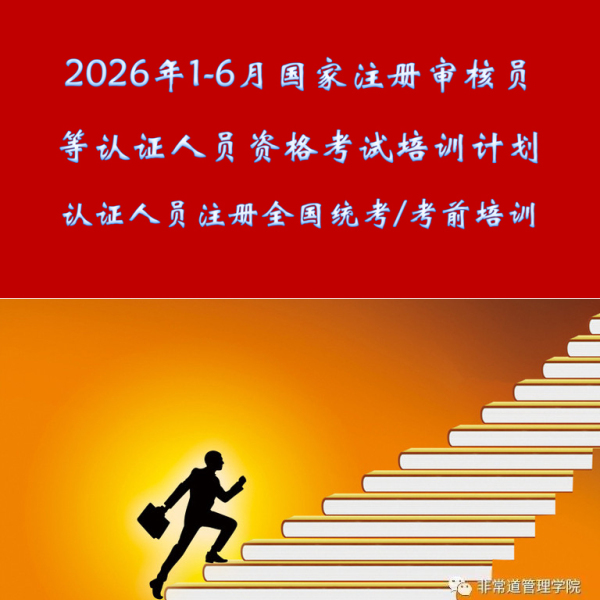 一次正确的选择,胜过千万努力!非常道管理学院集20余年在国家注册审核员等认证人员职业资格考试培训方面的扎实功底与丰富资源,我们坚持“确保学员各项培训收益,确保资深讲师授课,确保统考合格率在85%以上,免费推荐机构挂靠注册,新老学员长期合作共赢”的培训增值服务理念与特点,在业内深受好评。为感谢各新老学员朋友们及合作机构的长期的信赖与支持,在2026年每月及常年特推出QMS、EMS、OHSMS、FSMS、50430、EnMS、ISMS、ITSMS等体系认证审核员、服务认证审查员、产品认证检查员考前培训辅导班,以网络培训为主+广州北京上海深圳等地面授班相结合的培训模式。面授班具体时间待定;全国网络班,报名缴费后即可随时随地学习,直播平台(可回放)均为资深金牌讲师主讲;网络课程包括:教材+网课+考试题库+答疑+带CCAA标志培训证书;三年内免费复训。新老学员推荐及通过网站、公众号、微信群、QQ群渠道报名前300名的,在原价基础上可享受特惠价。具体优惠政策,欢迎来电或微信咨询。报名咨询热线:15817139618(手机微信同号),联系人:彭老师。